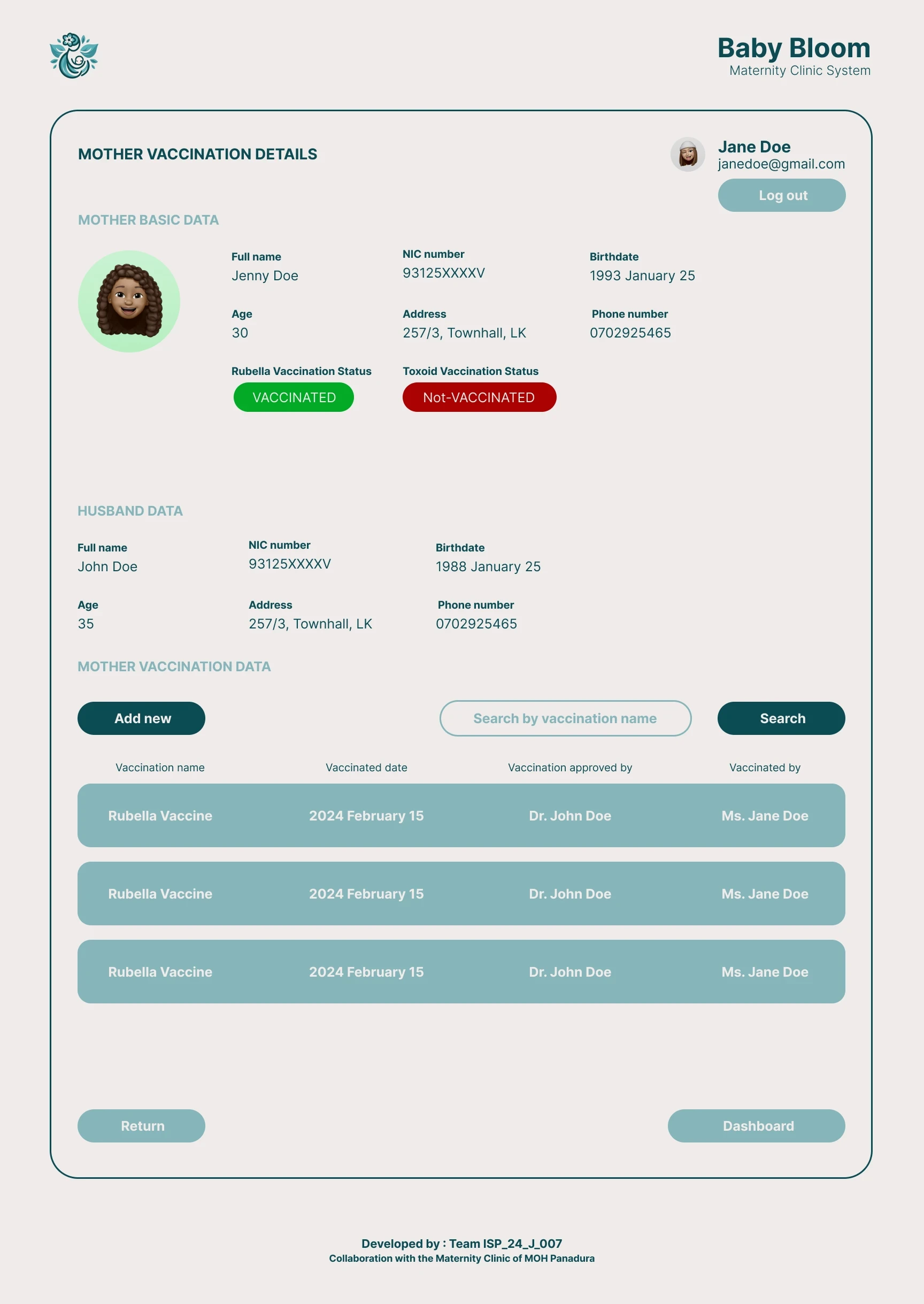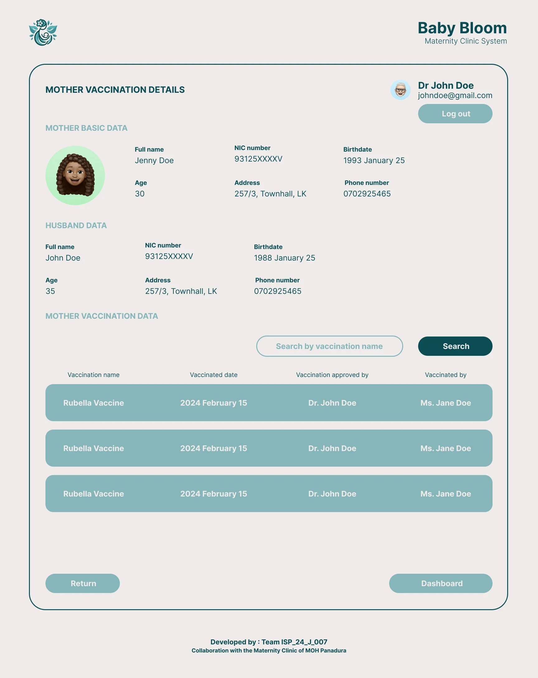 - Midwives and Doctors can view each pregnant mother health related information such as BMI status, Rubella vaccination status, etc using a modern and user-friendly interface.