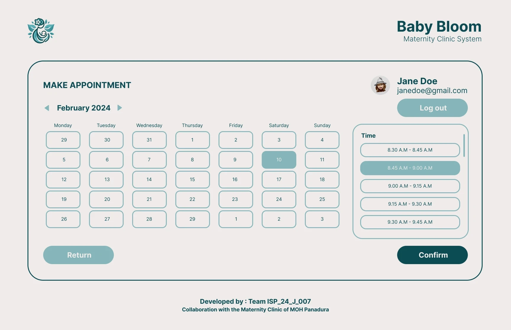 - Pregnant mothers can see the dates and time slots available and the booked time slots will be disabled.